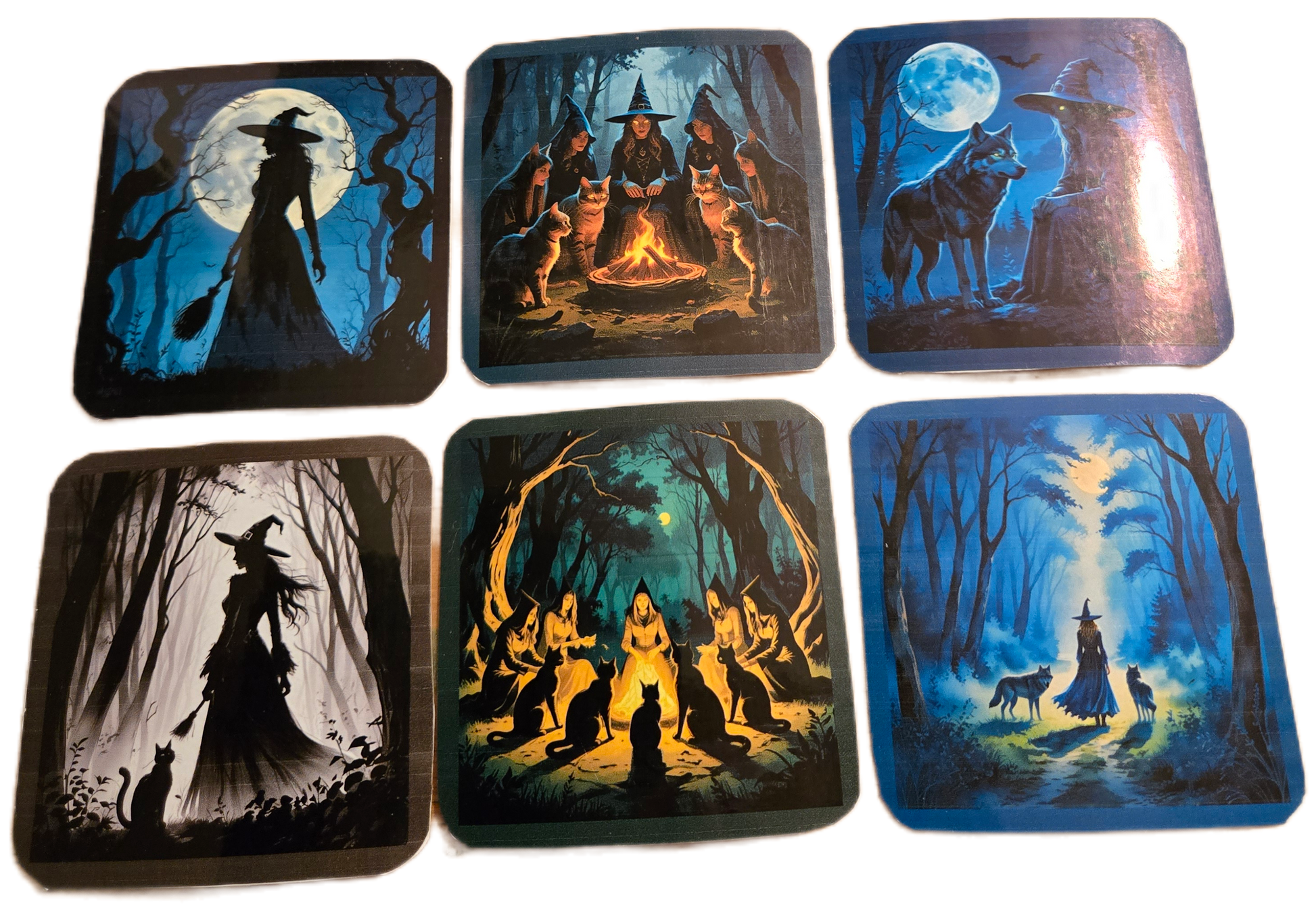 Style: Dark witchy ritual scenes, each sticker a mini piece of art